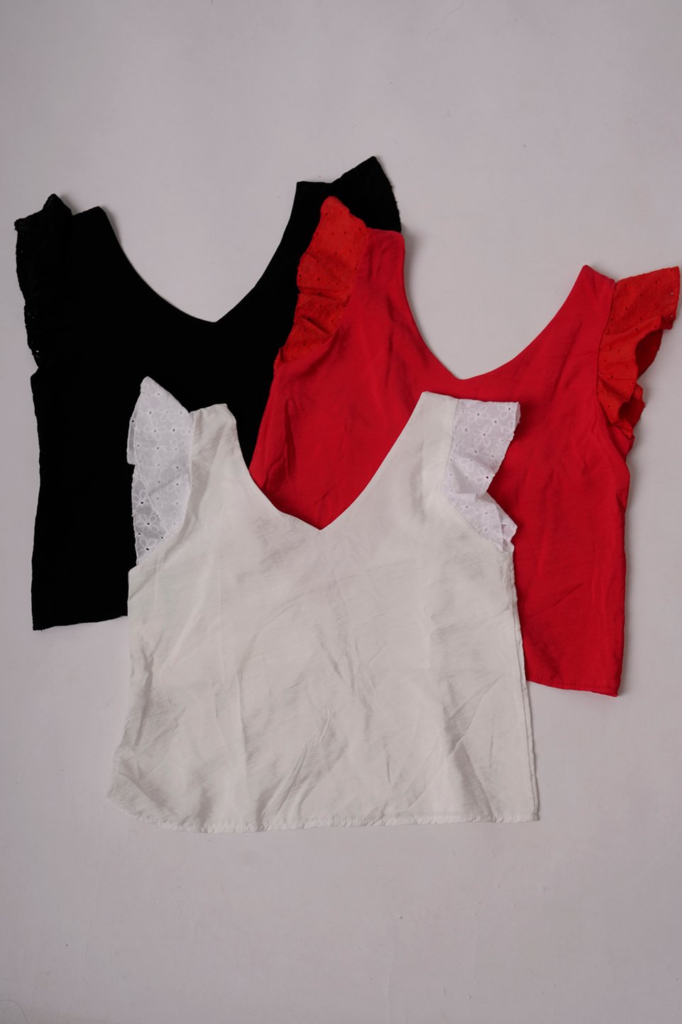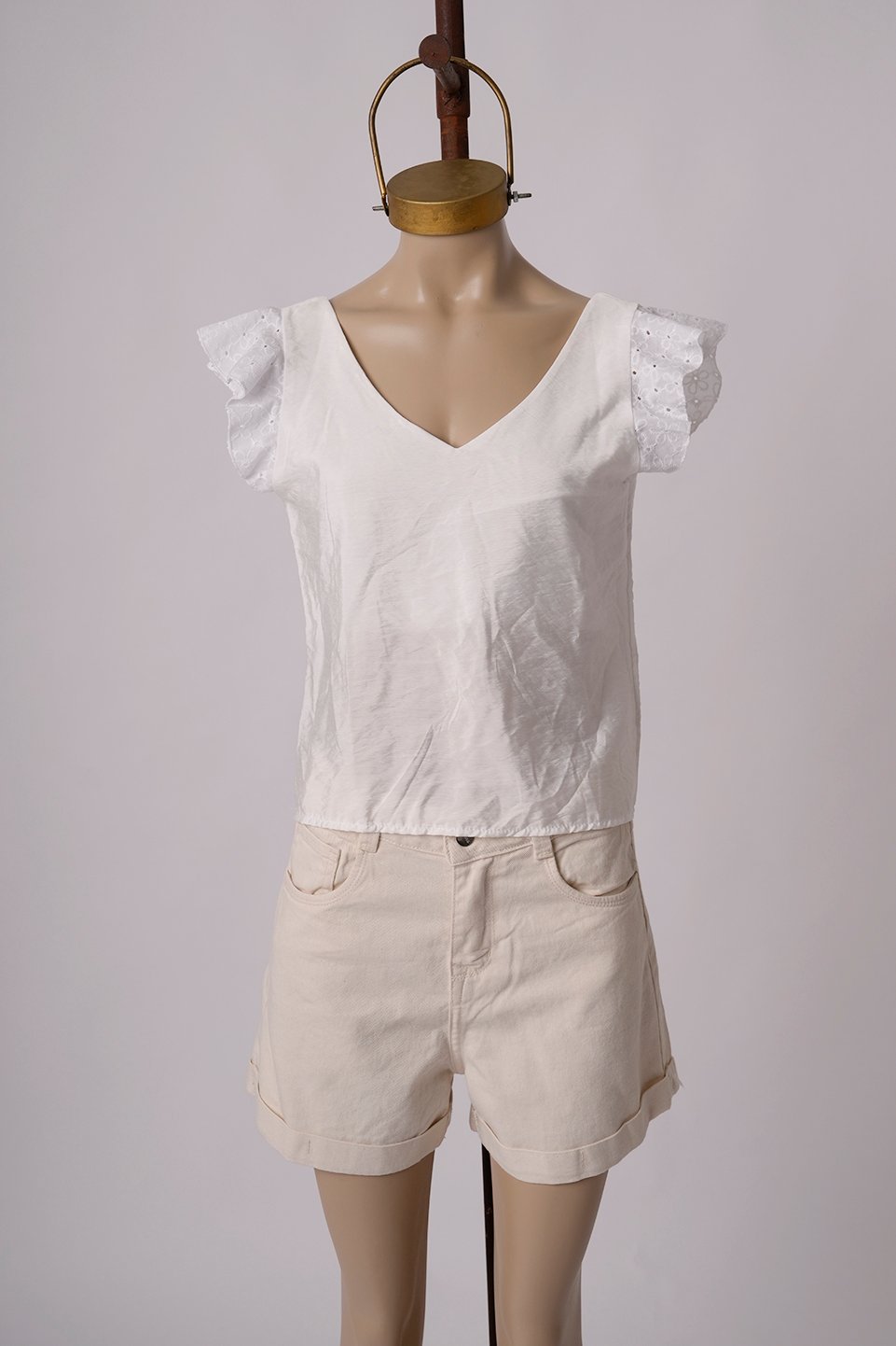 MUSCULOSA SATIN MATE MANGA BRODERIE PLANO