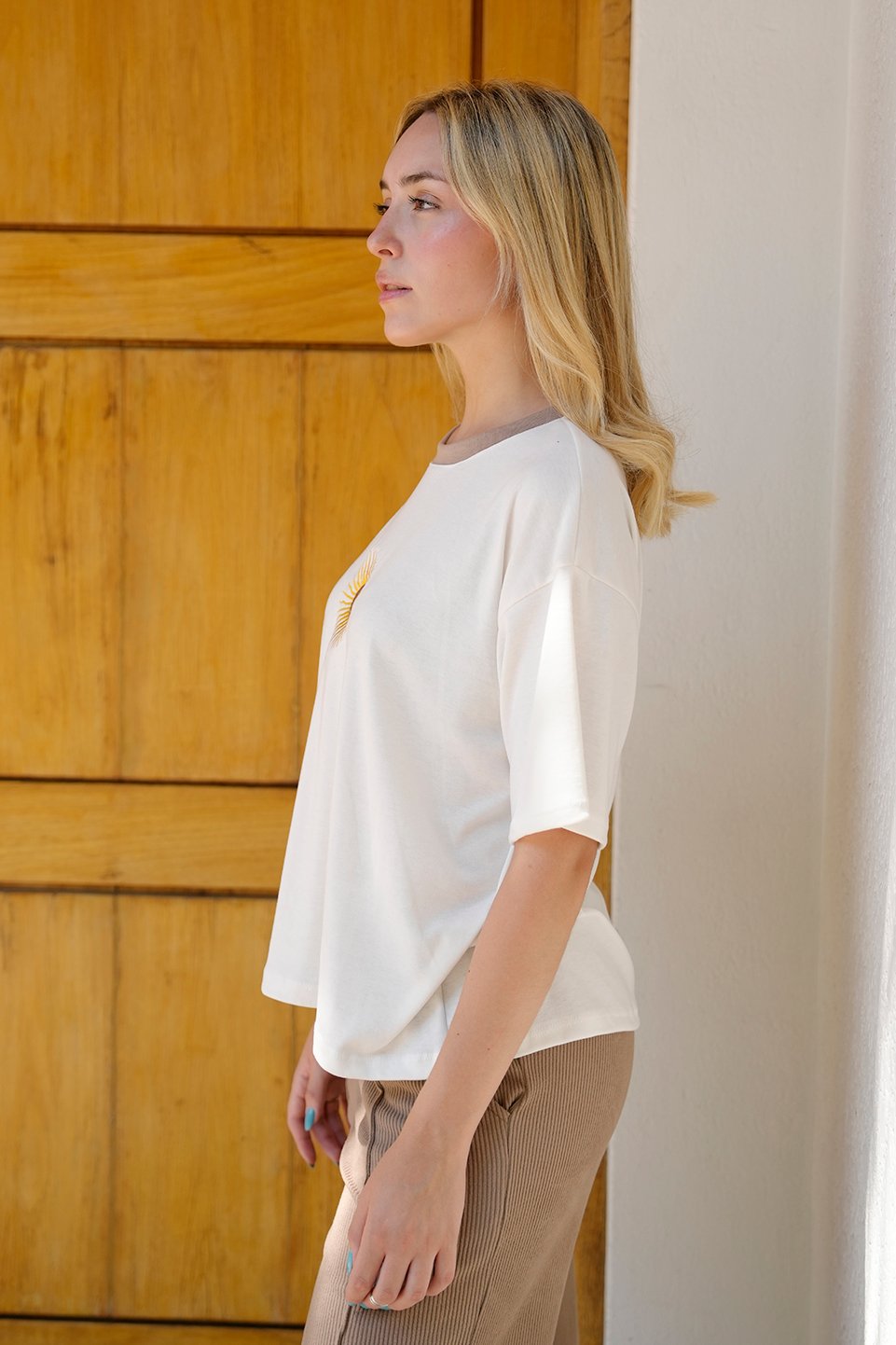 REMERA BOXY RIBB SOL DE MAYO EN EL MEDIO BORDADO